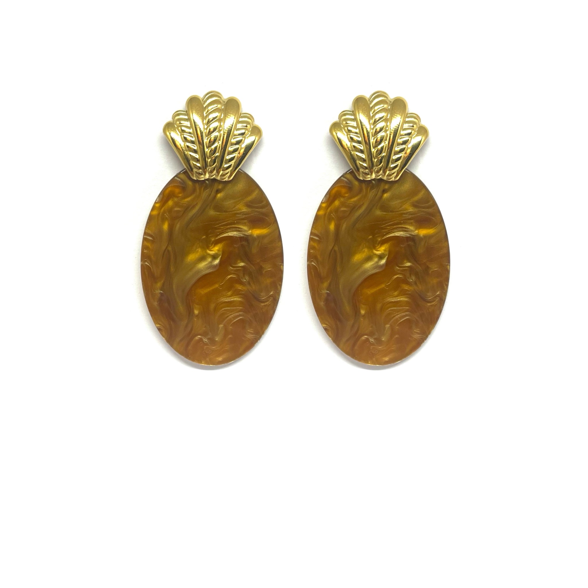 Matériaux : Acier inoxydable et pendentif en acétate brun doré