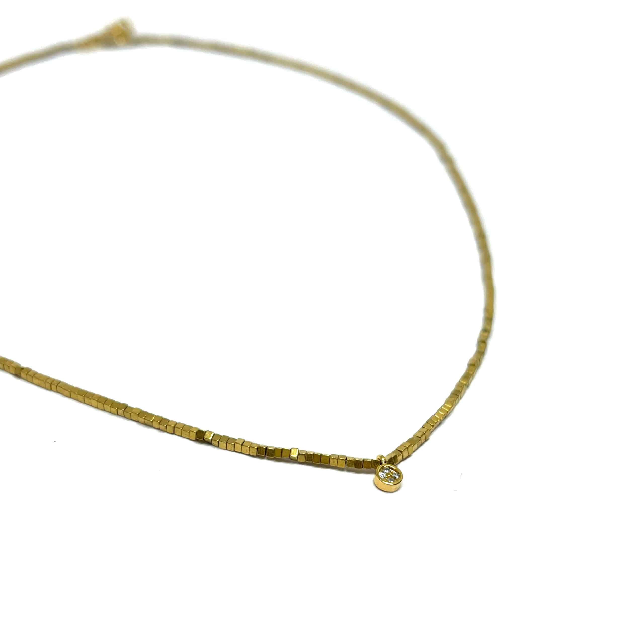 Collier en perles Hematite carré – pendentif zircon
